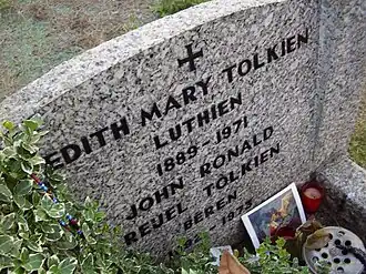 Могила Эдит Толкин и Джона Толкина на Вулверкотском кладбище. | ||||||||||