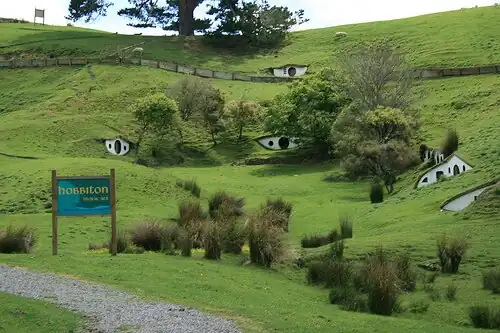 Три фильма («Властелин колец: Братство кольца», «Властелин колец: Две крепости» и «Властелин колец: Возвращение короля») по произведению Дж. Р. Р. Толкина снимались в различных областях Новой Зеландии; многие декорации съёмок были сохранены и стали частью индустрии туризма. Толкин-туризм вносит значительный вклад в экономику страны, где туризм является самой прибыльной отраслью[1].