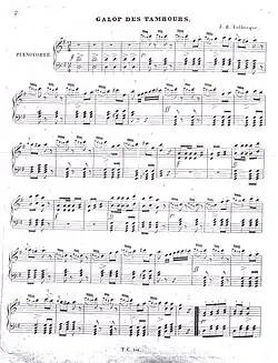 Оставил ряд партитур, которые сохранились в музыкальном отделе Национальной библиотеки Франции. Среди них Galop des tambours, имевший огромный успех на парижских карнавалах в 1839 и 1840 годах. Так, на балу театра «Ренессанс» его исполнял, под руководством самого композитора, оркестр из сорока барабанщиков.