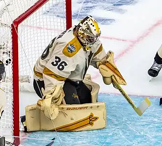 - ↑ Clausing, Shane. Former Storm goaltender makes NHL debut for Vegas Golden Knights. EverythingGP.com (11 марта 2021). Дата обращения: 13 мая 2023. Архивировано 11 марта 2021 года.