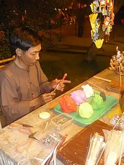 Краски делают из растений: зелёную из листьев бетеля, чёрную из пепла, красную из гака, жёлтую из куркумы, а другие цвета путём смешивания данных красок.