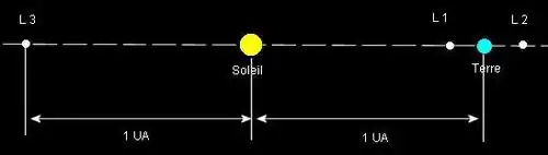 - Пример: точка L3 в системе Солнце — Земля находится за Солнцем, на противоположной стороне земной орбиты. Однако, несмотря на свою малую (по сравнению с солнечной) гравитацию, Земля всё же оказывает там небольшое влияние, поэтому точка L3 находится не на самой орбите Земли, а чуть ближе к Солнцу (на 263 км, или около 0,0002 %)[10], так как вращение происходит не вокруг Солнца, а вокруг барицентра[10]. В результате в точке L3 достигается такое сочетание гравитации Солнца и Земли, что объекты, находящиеся в этой точке, движутся с таким же орбитальным периодом, как и наша планета.