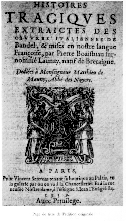 Основоположником жанра был Пьер Боэтюо (Boaistuau), издавший свой перевод нескольких новелл Маттео Банделло под названием «Трагические истории» (1559). В 1570 году его последователь Франсуа де Бельфоре (François de Belleforest) дополнил новое издание своими переводами. Из английского перевода «Трагических историй» заимствован сюжет «Гамлета» У. Шекспира.