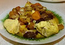 Традиционными блюдами, которыми угощаются обычно гости, являются «аш» (плов), причем имеются очень много разновидностей, «долма» и «кабаб» (шашлык), как правило, подаются на даче или в доме с двором.