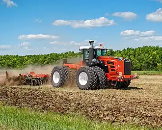 Шарнирно-сочлененный трактор Ростсельмаш 2400 мощностью 430 л. с. боронует почву перед посевом