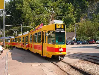 Десятый маршрут базельского трамвая. Этот трамвай ходит из Швейцарии во Францию.