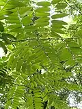 Листья парноперистые, опушённые или голые, длиной 30—120 см, состоят из 16—40 ланцетных листочков с зубчатым краем и красноватого черешка. Молодые листья красновато-коричневые, ароматные. Осенние листья жёлтые.