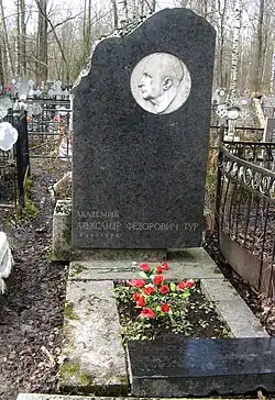 Урна с прахом академика Тура была захоронена в могиле его отца на Серафимовском кладбище (прим.: участок 19)[2]. Позже на могиле был поставлен черный гранитный памятник с профилем академика из белого мрамора.