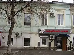 | 38 | ![]() | Здание построено в конце XIX века. В оформлении фасада использованы композиционные приёмы и декор, характерные для неоклассического направления эклектики: рустовка первого этажа, оформление окон наличниками и контрналичниками, решёнными в виде портиков, поэтажное членение междуэтажной тягой, венчающий карниз. Три оконных проёма второго этажа растесаны с устройством современных балконов. Первоначальные заполнение проёмов нижнего этажа заменены.