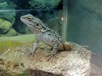 Общая длина достигает 37 см. Самцы немного крупнее самок. Туловище, голова и начало хвоста слегка плоские. Сзади барабанной перепонки, по бокам и на верхней поверхности шеи складки кожи имеют невысокую, острую, колючую чешую. Чешуя туловища разнородная.