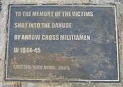 Массовые расстрелы евреев в Будапеште производились членами венгерской нацистской партии «Скрещённые стрелы» в конце Второй мировой войны, в 1944 — начале 1945 годов. Чтобы не заниматься захоронением, нацисты расстреливали жертв на берегу реки, для экономии пуль связывая им руки или ноги и стреляя только в первого — падая, он тянул за собой остальных[4][2][3][5].