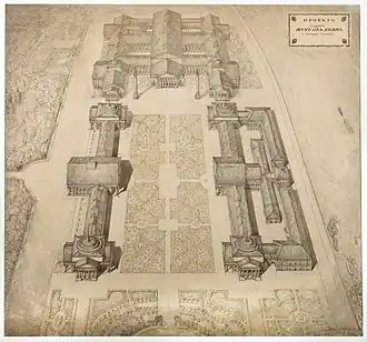 В 2012 году, с решением о переводе в Петербург Верховного суда РФ, планы застройки существенно изменились. Проект М. Б. Атаянца (2013), победивший на конкурсе архитектурно-планировочных концепций в начале 2014 года, предполагал, что все новые постройки будут административными[22], утраченный корпус шофа будет восстановлен, а между зданием дворца Эйфмана и набережной появится открытая к реке парковая зона[23].