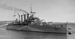 Крейсер находился в ремонте до декабря 1945 года. После завершения войны использовался как учебный корабль. 31 августа 1954 года выведен из состава флота; 25 января 1955 года продан на слом; 26 марта 1955 прибыл в Барроу на слом[26].