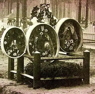 Могила Гапона стала местом собраний рабочих. 15 августа 1906 года, через три с небольшим месяца после похорон, в праздник Успения Пресвятой Богоматери, на могиле Гапона собралось множество людей, о чем сообщал полицейский урядник[54]: