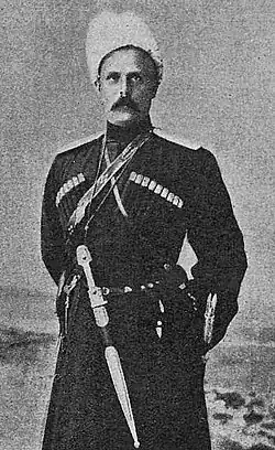 Окончил Поливановскую гимназию (1885)[1] и историко-филологический факультет Московского университета (1889). Ещё будучи студентом записался в казачье сословие Терского казачьего войска, а по окончании университета поступил вольноопределяющимся в Сунженско-Владикавказский полк. В 1890 году выдержал офицерский экзамен при Ставропольском казачьем юнкерском училище и был произведен в хорунжие[2].