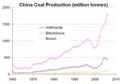 В течение первых трех кварталов 2009 года в Китае расход угля увеличился на 9 % с 2008 года и достиг 2,01 млрд метрических тонн.[14]