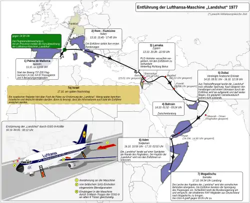 Угон самолёта «Ландсхут» — один из эпизодов Немецкой осени, произошедший в четверг 13 октября 1977 года, когда террористы из Народного фронта освобождения Палестины захватили пассажирский самолёт Boeing 737-230QC «Landshut» немецкой авиакомпании Lufthansa, следовавший с Балеарских островов. Самолёт находился во власти угонщиков четверо с половиной суток, прежде чем в ночь на 18 октября, уже в Сомали, был освобождён отрядом западногерманского антитеррористического спецназа при поддержке местных властей.