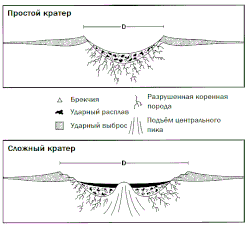 Структура маленького (простого) и крупного (сложного) кратеров