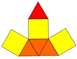 Составлена из 7 граней: 4 правильных треугольников и 3 квадратов. Каждая квадратная грань окружена двумя квадратными и двумя треугольными; среди треугольных граней 1 окружена тремя квадратными, остальные 3 — квадратной и двумя треугольными.