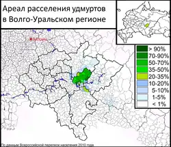 По результатам Всероссийской переписи населения 1897 года удмурты (с удмуртским как родным языком), проживали в следующих губерниях[26]: