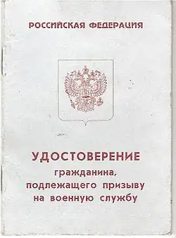 Удостоверение гражданина, подлежащего призыву на военную службу (разг. приписное удостоверение) — документ, выдаваемый гражданам Российской Федерации при прохождении комиссии по постановке граждан на воинский учёт (для мужчин — с 1 января по 31 марта года, в котором им исполняется 17 лет; для женщин — после получения военно-учётной специальности). При призыве гражданина на военную службу или зачислении в запас данное удостоверение изымается и выдаётся военный билет. При предоставлении отсрочки от призыва в удостоверение вносится соответствующая запись.