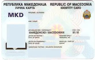 Северомакедонское удостоверение личности (макед. Лична карта) — это обязательный документ, удостоверяющий личность, который выдается в Северной Македонии. Документ выдается полицией от имени Министерства внутренних дел.