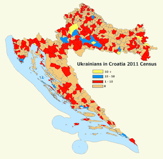 По данным последней переписи населения 2011 года, количество граждан Хорватии, которые указали свою принадлежность к украинской национальности, составляет 1878 человек, русинами обозначило себя 1936 человек, суммарная численность украинской диаспоры составляет 3814 человек[1].