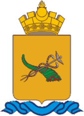 В золотом поле накрест зелёный опрокинутый отворённый влево рог изобилия с исходящими из него зелёными листьями и червлёными (красными) плодами, поверх которого чёрный Меркуриев жезл. Щит увенчан золотой башенной короной о пяти зубцах, на центральном зубце изображено соёмбо — традиционный монгольский символ вечной жизни (солнце, луна, очаг) — круг, сопровождённый внизу положенным в поясе полумесяцем, вверху — пламенем о трёх языках, в нижней части короны изображён национальный орнамент, символизирующий национальные традиции".