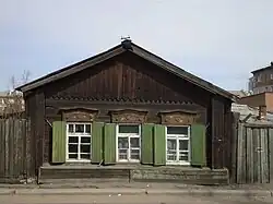 - Усадьба богатого горожанина и склад. Ул. Банзарова, 15. Дом постройки начала XX века. Главный фасад богато украшен декоративной резьбой. Окна большого размера 90х198 см. Сруб в лапу из брёвен диаметром 24 см. Бутовый фундамент, железная кровля.