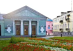 | 18 | Волынский академический областной театр кукол. Строился в середине 1920-х как польский театр им. Юлиуша Словацкого. Реконструированный в советские времена. Справа — бывший кинотеатр «Чары». Дом имел оригинальный вид и был ценным памятником архитектуры. На рубеже веков был реконструирован: изысканный фриз с аттиком кирпичного стиля сняли, достроили второй этаж. | ![]() |