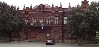 Дом в стиле позднего модерна, построен «глаголем» (Г-образной формы), со скошенным юго-западным углом, ориентированным на перекресток. Здание двухэтажное, оштукатурено, первый этаж кирпичный, второй — деревянный. Кровля металлическая, сложной формы. Над карнизом, соответственно пилястрам, располагаются фигурные парапетные столбики с завершением в виде волюты, между которыми — металлическая кованая ажурная решетка. Принцип композиционного решения уличных фасадов — центрально-осевая симметрия. Подчеркнута архитектурная декорация на уличных фасадах: угол, центральный и фланговые участки фасадов на 2-м этаже выделены вертикальным членением по всей высоте с колоннами, имеющими лепные композитные капители. Скошенный угол акцентирован балконом с металлической ажурной кованой решеткой. Первоначально под ним располагался вход на первый этаж. Над венчающим карнизом — массивные аттики, завершенные крупными белокаменными вазонами. Здание завершает карниз с широкой выносной частью и гладким фризом, первоначально нижняя часть карнизной плиты имела лепной орнамент. Стены первого этажа на уличных фасадах рустованные. В разное время в особняке размещались губком и окружком РКП(б), детдом, домтрест, жилуправление, Уралгипроводхоз и прочие учреждения. В 1920-е годы здесь располагается редакция газеты «Советская правда» (будущий «Челябинский рабочий»).