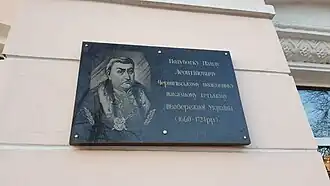 - дом № 40 — украинскому советскому композитору и хоровому дирижёру Григорию Гурьевичу Верёвке — на здании семинарии (сейчас военный госпиталь), где учился