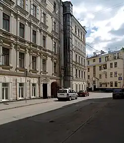 - № 2 — Доходный дом бесплатной лечебницы военных врачей для бедных всякого звания (1912—1913, арх. Р. И. Клейн)
