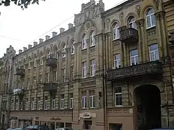 Построенный в стиле модерн в конце XIX века жилой дом под № 19 принадлежал известному литовскому общественному деятелю и адвокату Андрюсу Булоте (Андрей Андреевич Булат). Он избирался членом Государственной думы, состоял в партии эсеров с 1917 года, был членом Учредительного собрания.
