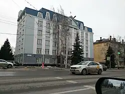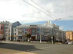 Здание отделения Сбербанка России. Изначально — многоквартирный жилой дом-комбинат для сотрудников НКВД Чувашской АССР. |