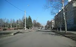 Слева по улице расположены Дворец Главы Удмуртской республики и сквер Победы.