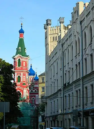 - Дом № 2 — православная церковь Святой Троицы (1892—1895, архитекторы Я.-Ф. Бауманис и Б. М. Эппингер).