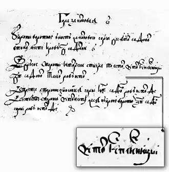 Этот латинизированный вариант попал в труды учёного при переписывании люстрации Луцкого замка 1552 года[3]. Однако его прочтение, по мнению историка Елены Бирюлиной, не столь однозначно[3].