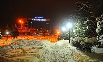 - Гостиница «Олимпийская» — Советская площадь, дом 2. Гостиница в современном стиле со стеклянным фасадом, класса 3 звезды. «Олимпийская» была построена и введена в эксплуатацию в 2005 году и имеет в своем распоряжении 49 номеров разных категорий.
