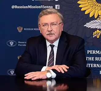 - ↑ Указ Президента Российской Федерации от 23.01.2018 г. № 19 «О Постоянном представителе Российской Федерации при международных организациях в Вене, Австрийская Республика». Дата обращения: 1 августа 2018. Архивировано 29 октября 2019 года.