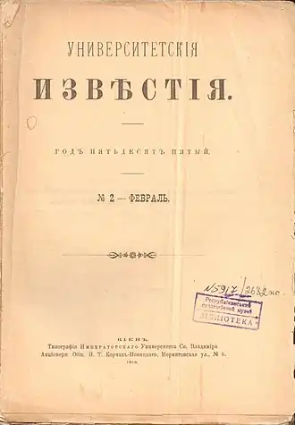 | Специализация | журнал Киевского Императорского университета святого Владимира |