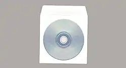 - Бумажный конверт (англ. Paper sleeve). Диск вкладывается в бумажный конверт, верхняя часть которого обычно складывается и приклеивается для фиксации диска внутри. Могут быть как с окном, так и без. Эта упаковка является технической, и диски в бумажных конвертах редко продаются в отдельности. Одна из самых дешевых видов упаковки.