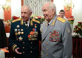 Старейшие члены Управления — Д. Т. Язов (90) и М. А. Гареев (91), 8 ноября 2014 года.