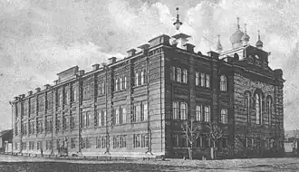 - 1 2 Здание Духовного училища с церковью Казанской иконы Божией Матери. PastVu.