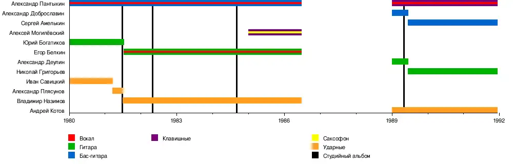 - Алексей Могилевский — клавишные, саксофон (1985-86)