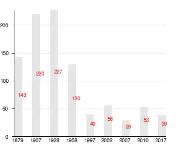 Число жителей по семейным спискам 1879 г.: 75 м. п., 68 ж. п.; по приходским сведениям 1879 г.: 72 м. п., 75 ж. п.