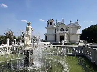 На территории усадьбы расположен парк[6], в котором раньше рос старинный черешчатый дуб[7]. В парковой зоне проложены прогулочные тропинки, имеются беседки и скамьи для отдыха, сценическое пространство для концертных программ, фонтанный комплекс[8].