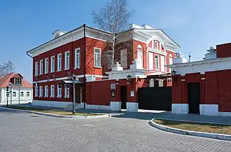 Главный дом усадьбы — двухэтажное здание, размещено на углу участка с внешней стороны. Уличный фасад прост, декорирован лишь узкими наличниками с крупными замковыми камнями в крайних проёмах, а также карнизами между этажей и под крышей. Более сложно оформлен дворовый фасад, где имеется центральный ризалит с фронтоном и аттиком, а парадный вход выполнен в виде арочной лоджии (её верх застроен). Анфиладная планировка сохранилась частично. Среди интерьеров, относящихся к рубежу XIX—XX вв., имеется печь с полихромными изразцами, остальные печи отделаны белым кафелем[2].