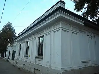 Прямоугольное в плане каменное одноэтажное с подвалом здание. Фасады побелены, а декоративные детали (карниз, филёнки, подоконные ниши) оштукатурены. Крыша двускатная с вальмой. Композиция уличного фасада в три окна отличается простотой и лаконичностью: простенки между окнами и фаланги декорированы парами широких филенчатых лопаток; под окнами, не имеющими наличников, — подоконные ниши; небольшие горизонтально расположенные филёнки в верхней части лопаток образуют вместе с филёнками над окнами единый фризовый пояс. Высокий цоколь не имеет декоративных элементов. Под каждым окном в нём — горизонтально расположенные ниши — следы заложенных окон подвала. Фасад завершён венчающим карнизом большого выноса[6].
