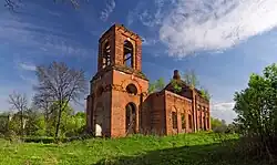 ![]() | Усадьба Банино | Ленинский район, урочище Банино | Усадьба Кокошкиных. Из межевой книги известно, что в 1777 году усадьба в Банино принадлежала вдовствующей генеральше Кокошкиной Екатерине Михайловне. В комплекс входят фрагменты стен усадебного дома, заброшенная церковь Спаса Преображения (1830), кладбище, остатки парка и пруд[37]. |
